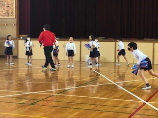 今日のお昼休み、健康委員さんが主催で「やり投げ体験」をしました。ふわふわのロケットをやりに見立てて、思い切り飛ばします。距離を伸ばすには腕振りの動作や体幹が関係しています。これから毎週金曜日、低学年 中学年 高学年 と順番に参加できるように体験日を開催していきます。楽しく、遊びながら体幹をしっかり鍛えていってほしいと思います。