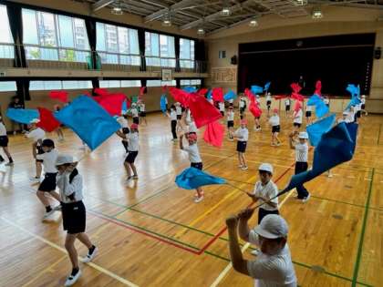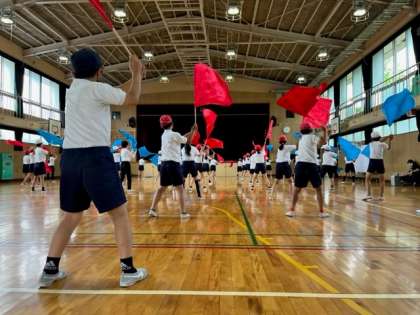 5・6年生のフラッグの練習の様子です。