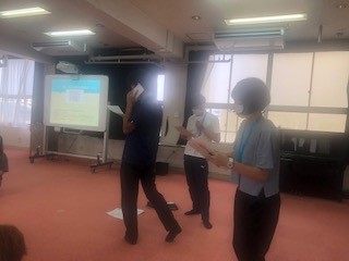 教職員でアレルギー対応の研修をしました。給食のアレルギー対応の流れを再確認したり、アレルギーのクイズを通して知識を深めたりしました。エピペンを打つ練習では、役割分担をしてロールプレイングをしました。設定は運動性アナフィラキシー発症です。台本に沿って役割を演じる中で、「担架を使った搬送のしかた」「AEDの使い方」「連携のしかた」などを学びました。子どもたちの大切な命を守る判断、行動がとれるように、今後もしっかりと危機管理意識を高めていきたいと思います。