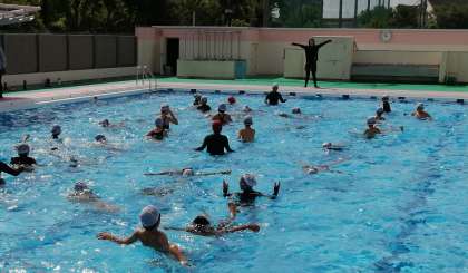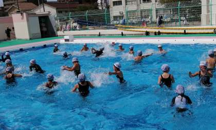 うでの動きをたしかめながら、クロールの息つぎの練習をしました。今日も水の中は気持ちよかったです♪