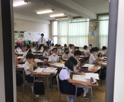 4年生の教室で、未来の先生を目指して、実習を進められます。