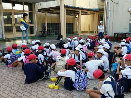 3,4年生は錦織公園に秋の遠足に行って来ました。秋晴れのとても良い天気のもと、滑り台などの遊具で思いきり遊びました。一人ロ−プウェイが人気でした。