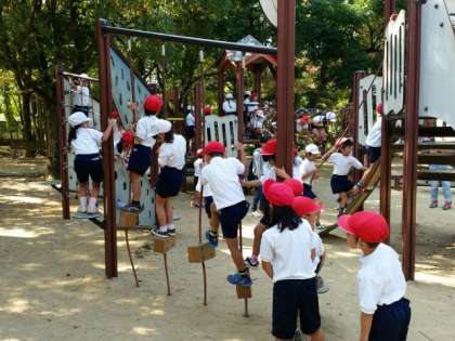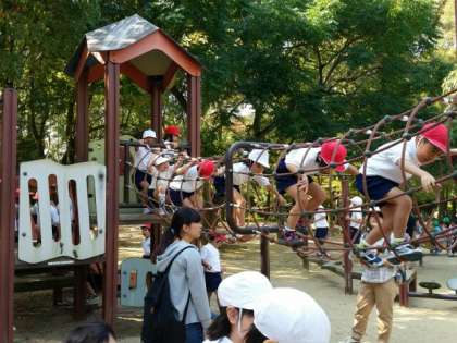 滑り台や輪くぐり、思い思いに遊具で遊びました。