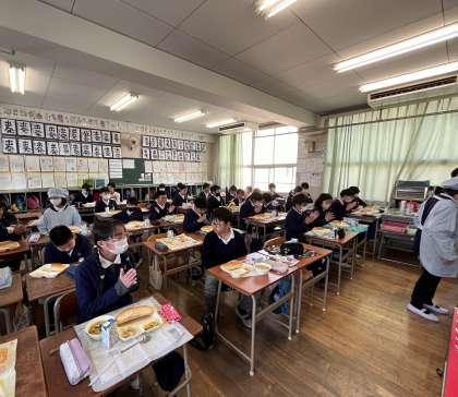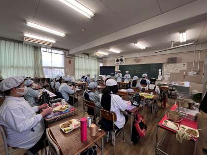 もち米と焼き豚、栗、しいたけを中華風味の味付けにして、オーブンで蒸し焼きにしたおこわです。もちもちした食感と中華風味の味付けで人気のある献立です。