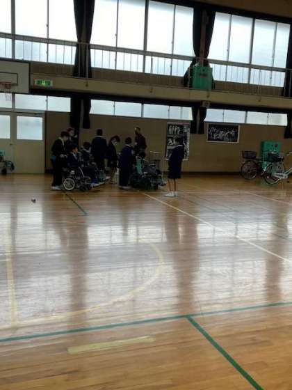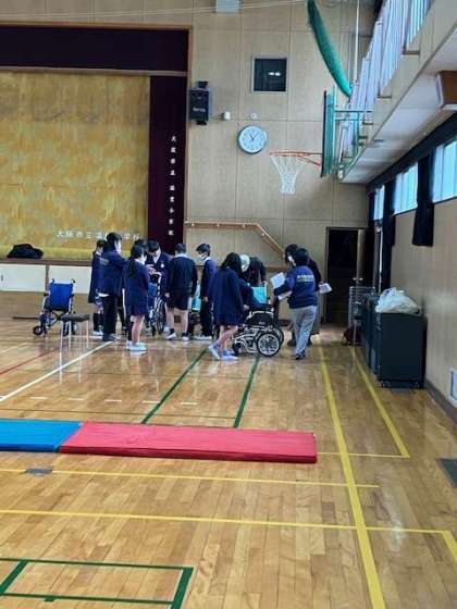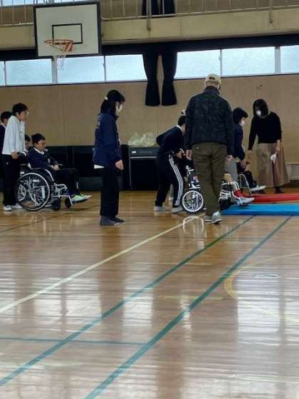 15日3時間目、車いす体験をしました。全員車いすに乗る体験と、車いすを押す体験をしました。実際乗って、押してもらったり、押したりすることで、今後介助するときにどうしたらいいか考えることができました。