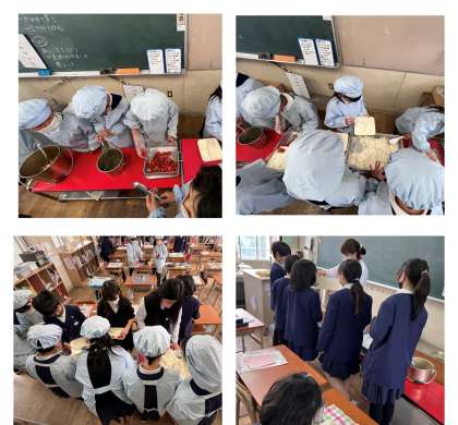 牛肉とはくさい、舞茸、とうふなどの食材を砂糖と濃口しょうゆで煮ています。ごはんに合う児童に人気の和食献立です。