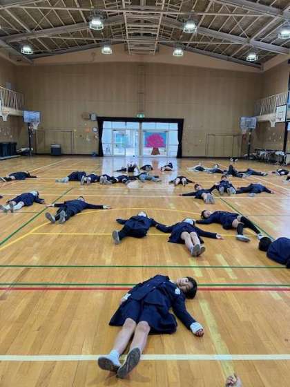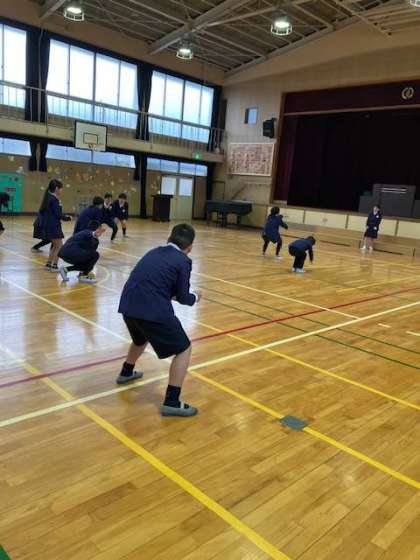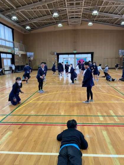 水曜日の卒業生を祝う会の練習が早く終わり、余った時間で「だるまさんの1日」をして遊びました。4枚の写真はさて、だるまさんが