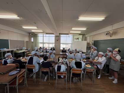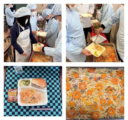6年生が湯里小学校で最後の給食なので、ラッキーにんじんで仕上げました。