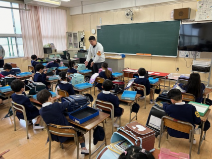 1年生は、ランドセルを開けて教科書を出して授業の準備します。