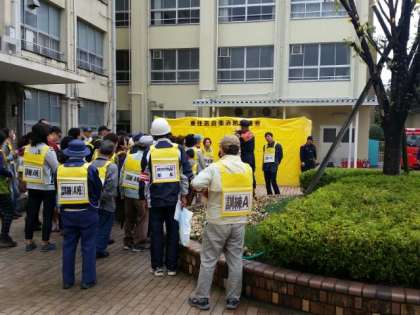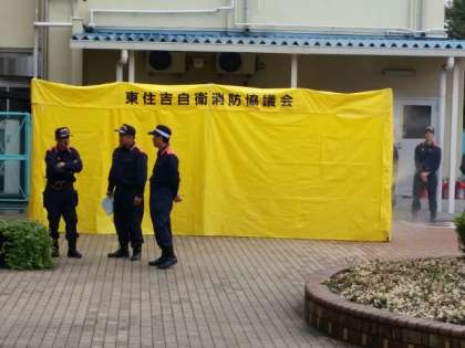 東住吉消防署の全面協力のもと、煙中体験と水消火器の体験をしました。