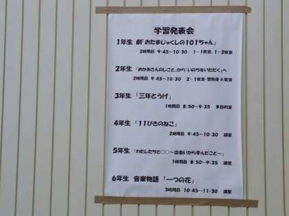 本日学習発表会を行います。各学年の発表時間が異なりますので、お間違えなきようによろしくお願いいたします。