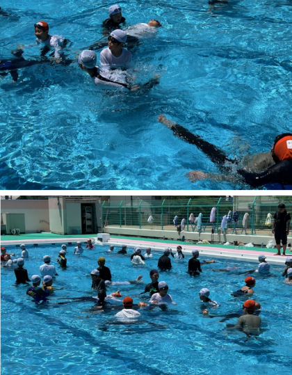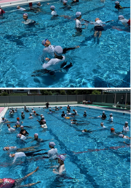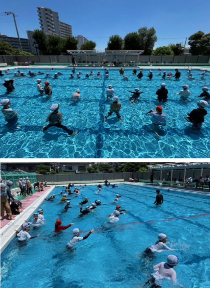 今日の3時間目の水泳の授業は、着衣泳に取り組みました。