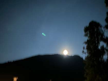 満月にもう少しの月が山から登ってきました