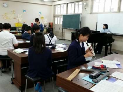 1組は音楽室で音楽の授業でした。リコーダーの合奏をしました。