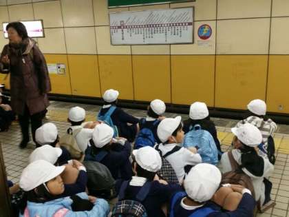 喜連瓜破駅に予定より早く着きました。電車の中でもマナーを守って、静かに乗っています。