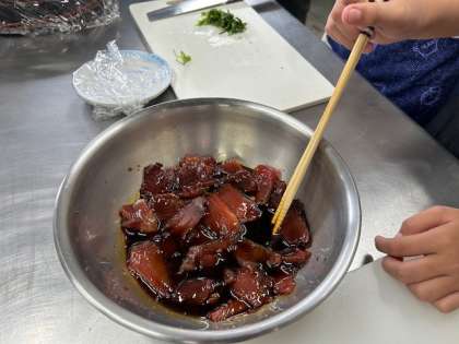 カツオしっかりタレに漬け込んでくださいね