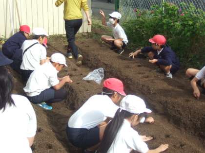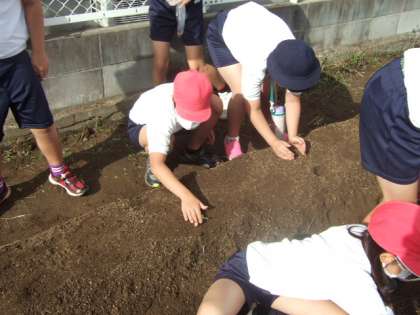10月31日(木)に、4年生が学習園に田辺大根の種をまきました。