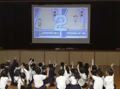 クイズや身の回りの危険を見つけながら、交通安全について学習しました。