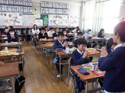冬が旬のだいこんを豚肉と一緒に煮ものにしています。でんぷんでとろみをつけた温かい冬の献立です。