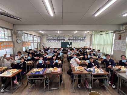 デザートは、梨の缶詰の入ったみかんゼリーです。