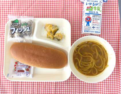 鶏肉とベーコンでうまみをだしてカレールウで味付けしたスープスパゲティです。