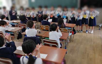 学校たんけんのお礼に、ありがとうカードを2年生に渡しました。