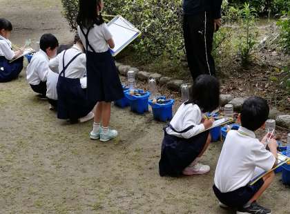 「早く育ってほしい!」「お花咲いて〜!」と話しています。