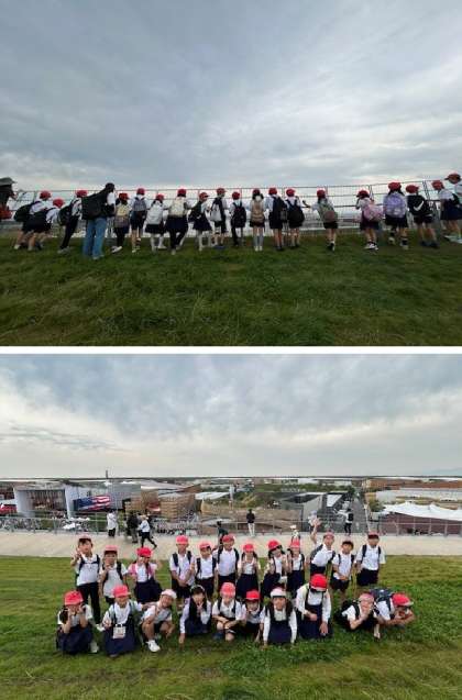 もう一段高い外側に上がると、学校の方も見えます。