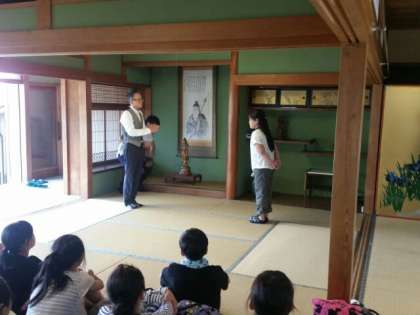 開舍式を行いました。児童代表のあいさつの後、お世話になります西清旅館のご主人からあいさつをいただきました。