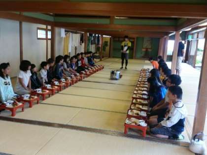 予定より30分早く、夕食にしていただきました。お膳での食事なので、正座をして食べます。感謝の気持ちを込めて、いただきます。