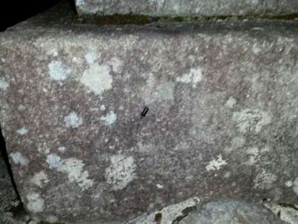 碑に止まっているホタルをフラッシュをたいて、撮影しました。飛びたった瞬間です。