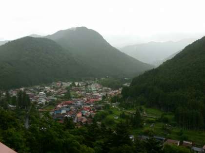中腹からの洞川温泉の街並み。面不動鍾乳洞に入って行く最後の階段です。