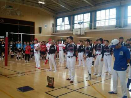 6月19日、中野中において春の5校ソフトボール、バレーボール大会が開催されました。体育館で開会式を行い、選手宣誓が笑いを誘う楽しいものでした。