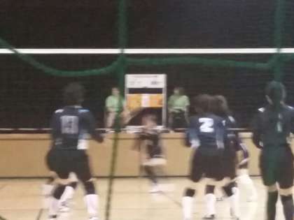 OBチームとの対戦、1セットは序盤はシーソーゲームでしたが、中盤ミスが続きあっさりと取られてしまいました。2セット目に入ると、サービスエースの連発です。16対10とリードをして波に乗ったかと思われましたが、サーブレシーブの調子悪く、18対20とマッチポイントを取られてしまいました。1点取り、相手のスパイクを見事ブロック、さあジュースかと思われましたが、オーバーネットでゲームセット。惜しくも敗れてしまいました。