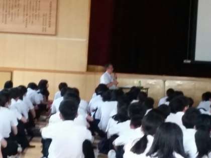 20日に中野中学校で防災学習がありました。元PTA役員の方から、熊本市に支援隊として避難所に派遣された内容を中心に、話していただきました。