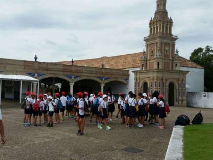 予定より早く、スペイン村に到着しました。曇り空ですが、暑いです。子どもたちのテンションが、上がっています。