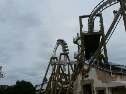 スペイン村の一番人気のアトラクションです。2年間雨だったので、3年目にしてようやく乗ることができました。逆さまや回転は、やはり迫力があります。