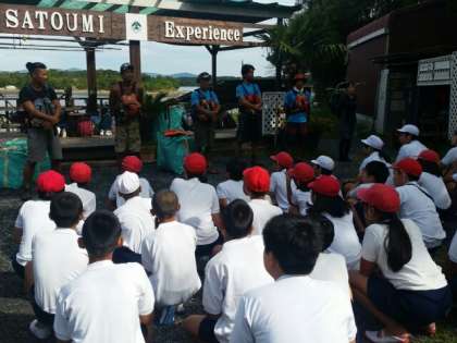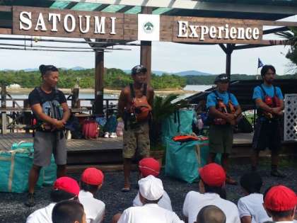 天気は晴れました。波ひとつなく、絶好のカヤック日和です。本日、ご指導いただくスタッフの方々を紹介していただきました。