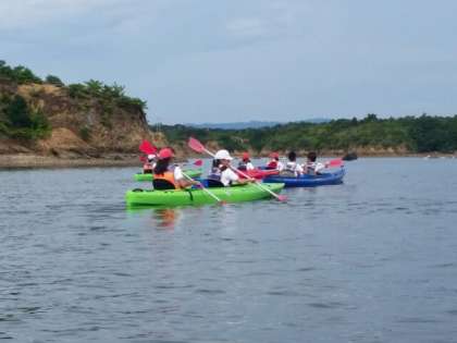 砂浜での練習をしっかりした後、ようやく海での実践です。