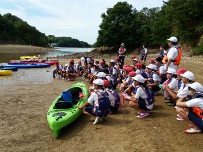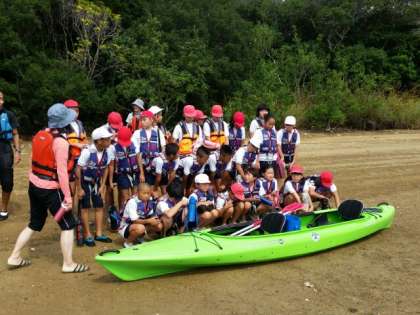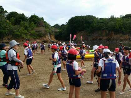 二人で協力し、声を掛け合い、砂浜から遠くに見えた、無人島に到着しました。カキの貝殻が本当にたくさんあり、運動靴を必ず履く事の必要性を実感しました。