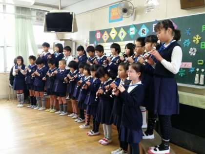 3年生は、リコーダー発表会です。黒板にあるプログラムにしたがって、全員合奏、ソロ演奏あり、保護者の皆さんの温かい拍手がうれしかったです。