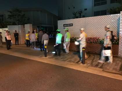 午後8時にスタートし、それぞれの町会ごとに湯里小学校に集まり、かまどベンチや防災倉庫、災害時に割り当てられている教室等を確認し、最後に多目的室に集まり、総括をするという流れでした。