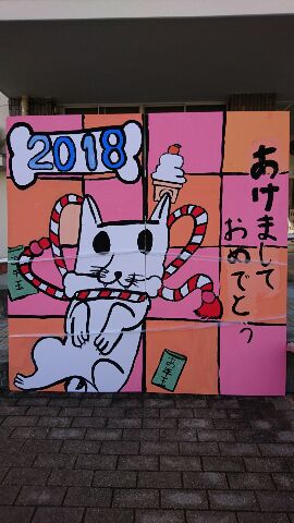 駒川商店街の新春を飾る絵を6年生が作成しました。畳2畳分くらいの大きな力作です。表と裏の両面に描いています。