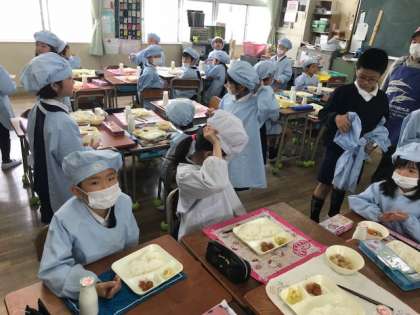 4月17日(火)の給食です。マグロのオーロラ煮は子どもたちにも人気です。