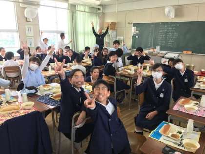 6年1組におじゃましましたがノリノリで写ってくれました。