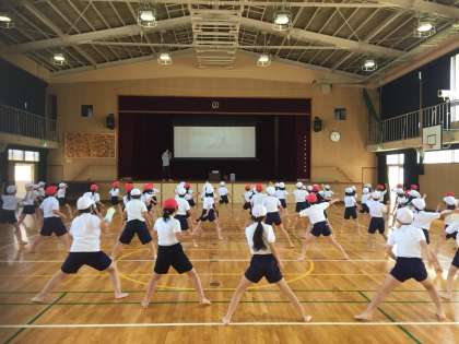 今週から始まった運動会の練習。毎日2時間、団体演技の練習をしているのですが、最近は途中の休み時間にも一生懸命おどりつづけている子がふえてきました。がんばりすぎているので先生から「少しは休憩しよう。」と声をかけられている子もいるほどです。