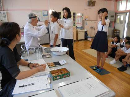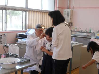 大屋校医先生に全学年の耳鼻科検診を行っていただきました。プール水泳が6月24日から始まります。治療勧告を受けた人は、病院で治療を受け、お医者さんの許可をもらうようにしましょう。耳そうじは、子どもでは難しい場合が多いです。保護者の皆さんのご協力をよろしくお願いいたします。