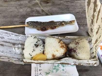 おにぎり弁当と川魚の塩焼きです。