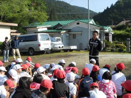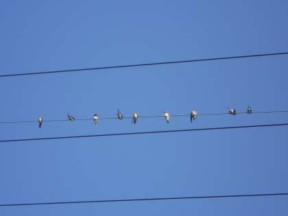 2日目の朝です。イワツバメが無数飛び交い、電線でしばし休憩中。イワツバメは、当地では「かりがね」と呼ばれているそうです。朝会のあと鍾乳洞見学に出発します。