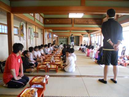 朝食は、初めてパンです。残さずしっかり食べましょう。後片付けも宿舎の人に頼らず、みんなで協力してしました。「ここまでしてくれる学校は始めてです」とうれしい言葉をいただきました。